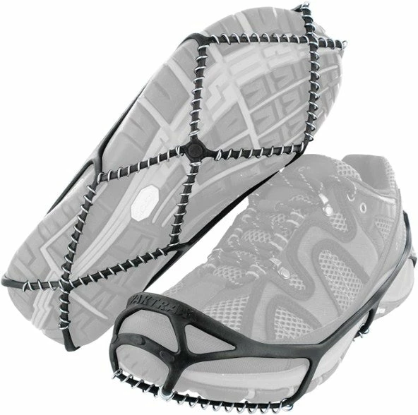 Yaktrax spikes are excellent for navigating icy sidewalks, parking lots, and driveways. The seven tungsten carbide spikes placed under the ball and heel of the foot deliver aggressive grip, even in glare ice conditions. Compact and lightweight, the Yaktrax Spikes stretch to fit most types of footwear and conveniently stow away in any coat pocket.